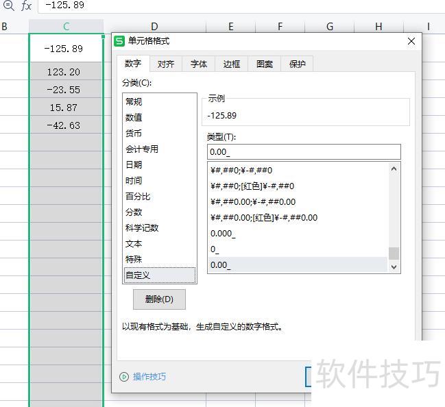 通过Excel自定义格式功能,可将负号显示在数值文字的后方。