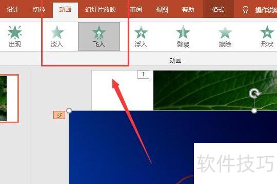 为两张图片添加飞入动画效果,具体动画类型可根据实际需求自行调整设置。