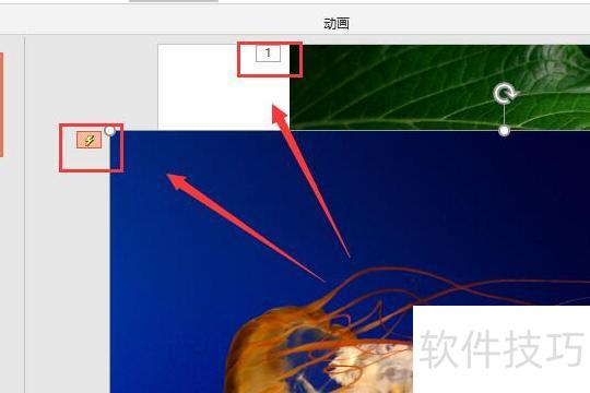 系统按编辑动画的先后顺序自动为图片编号,首张为1,次张为2,其中第二张显示闪电标志,表示已添加触发效果。
