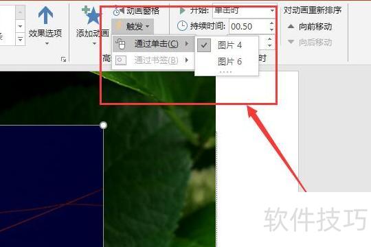 选中第二张图片,设置其触发效果为点击第一张图片时触发,即可实现:先显示第一张,点击后出现第二张。
