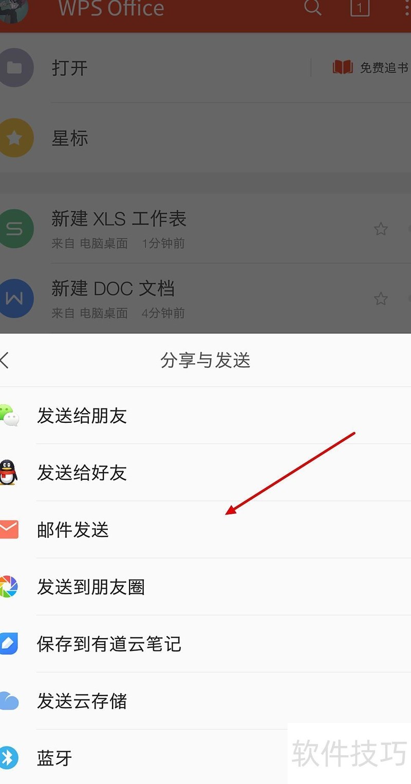 在更多页面中找到邮件发送功能,点击进入邮箱选择界面,所示。