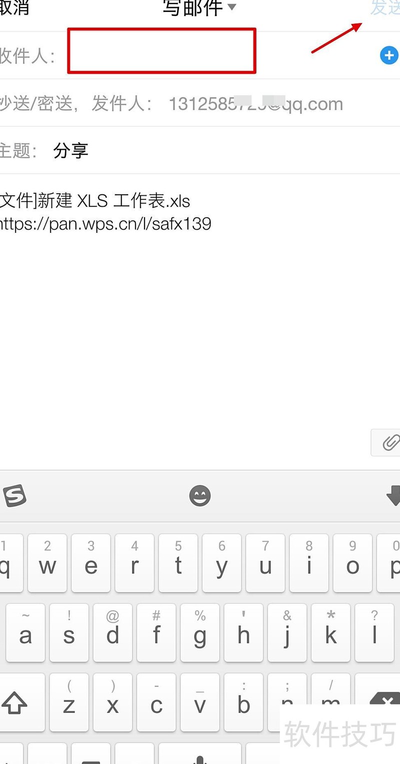 在QQ邮件发送页面的收件人栏输入信息,点击发送,即可成功通过QQ邮箱发送表格,所示。