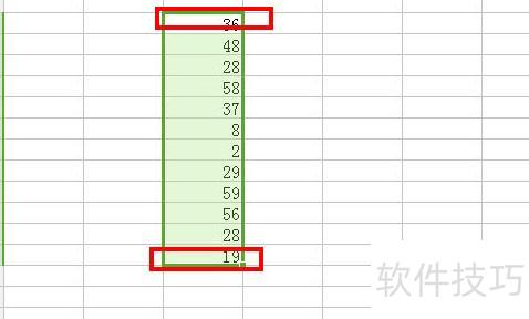 单击首行数字后,按住Shift键再单击末行数字,即可选中垂直列中的全部数字。