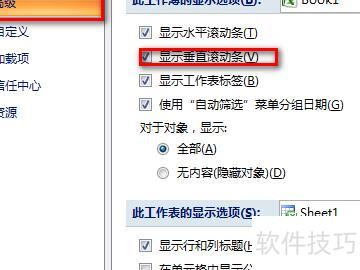 打开Excel选项后,左侧菜单中点击高级,右侧页面将显示多项设置。向下滚动,找到显示垂直滚动条选项并勾选即可,具体操作所示。