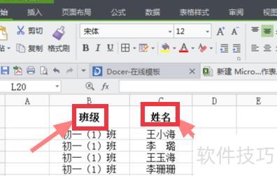 打开需修改的Excel表格,将班级和姓名两列内容合并至同一列中。