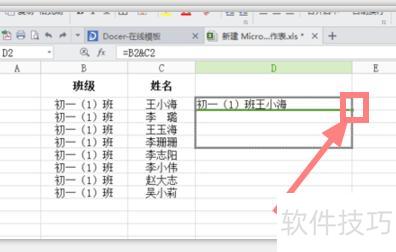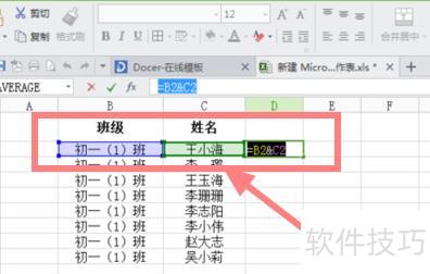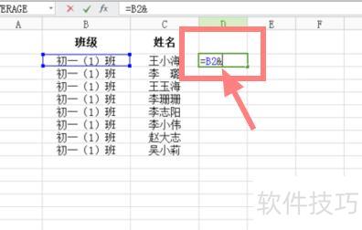 若需将班级列与姓名列内容合并,可先选中目标单元格,按住Ctrl键并用鼠标向下拖动,即可批量完成合并操作。