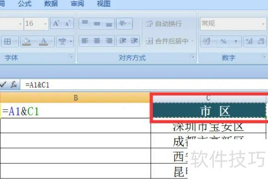 在=B2后输入&符号,即按住Shift键再按下数字7键即可完成操作。