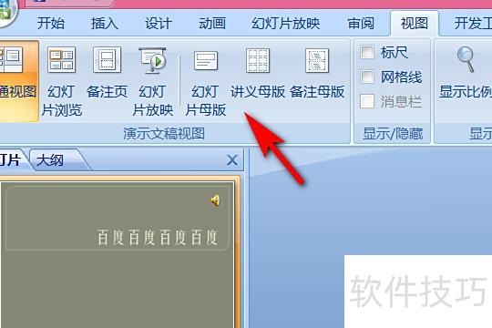 在视图菜单中选择幻灯片母版,使其以母版模式显示。