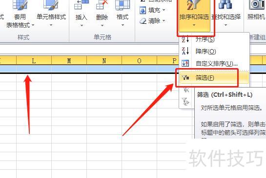选中首行,点击右上角排序和筛选,在弹出框中选择筛选功能。
