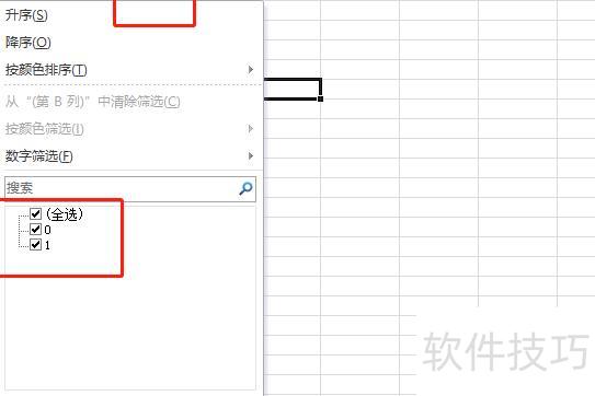 首行单元格右侧会出现倒三角图标,点击后在弹出框中选择显示0或1,筛选奇数选1,偶数选0,最后点击确定即可完成筛选。