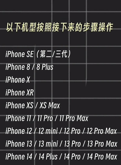 2、强制重启(硬重启)如果手机完全死机,屏幕黑屏,或者触控失灵,软重启没反应,那就需要强制重启了,这个方法,能强制切断电源,再重新启动系统,对于iPhone 8及以后的机型,操作步骤是,快速按下,并释放音量加键,然后,快速按下,并释放音量减键,长按侧边按钮,直到出现苹果标志,对于iPhone 7系列,则是同时长按,侧边按钮和音量减键,直到出现标志。