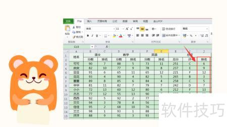 接下来需对比学生成绩,并标注各自的名次。