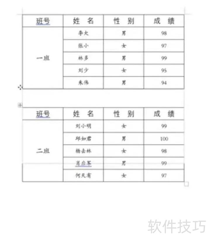 老师在日常工作中常需将两份成绩表合并为一张。若直接拖动第二个表格拼接,虽看似连在一起,但中间会出现明显粗线,说明两张表的边框重叠,并未真正融合成一体。