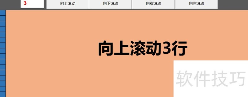 例如,在包含数万行数据的表格中,若想一次性滚动100行,可在文本框中输入100,然后点击相应按钮即可完成滚动操作。