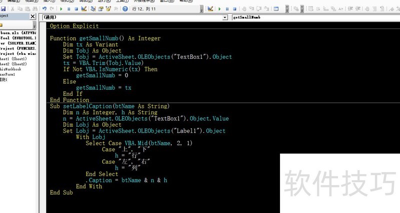 类似地,当点击命令按钮2时,程序会执行向上滚动操作。同样是利用ActiveWindow.SmallScroll方法,但此次是将getSmallNumb的返回值传给参数up,从而实现窗口内容的小幅度向上滚动。紧接着,也会调用setLabelCaption过程,并传入CommandButton2的标题文本,以同步更新界面提示信息,使用户清楚当前触发的是向上滚动功能。两个按钮分别对应相反方向的滚动操作,且均通过统一的方式反馈操作状态,增强了用户交互的直观性与一致性。