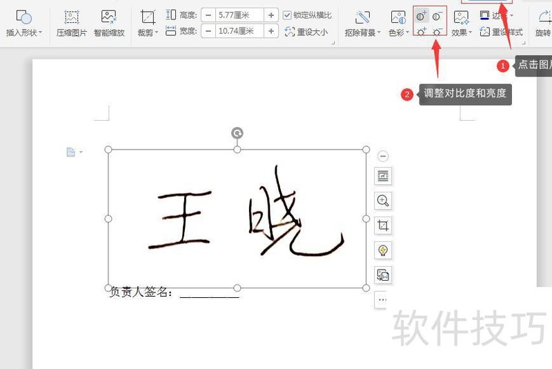 可使用增加对比度调整图片背景,若签名文字出现边缘,建议通过色彩中的黑白选项进行处理,以优化视觉效果。