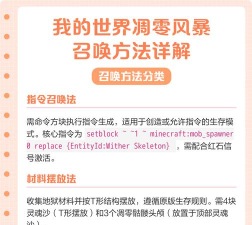 1、召唤凋零风暴,需要哪些材料?你得找到灵魂沙,这东西在下界很常见,然后,你需要凋零骷髅的头颅,同样在下界,击败凋零骷髅才有机会获得,记住,需要三个头颅,你还需要命令方块,这是召唤的关键道具。