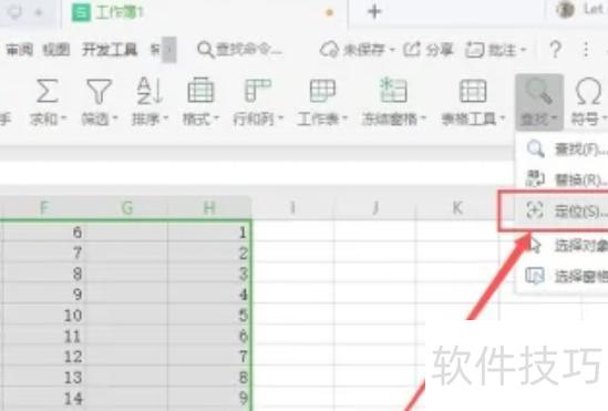 点击查找,选择定位功能。