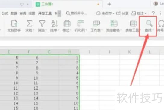 在顶部菜单栏的开始下方选择查找功能。