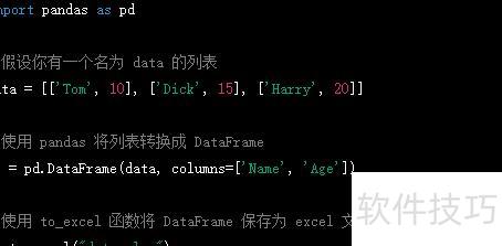 可利用 pandas 库中的 Dataframe 函数将列表转化为 Dataframe 数据结构,随后调用 to_excel 函数将其保存为 Excel 文件,实现数据的便捷导出与存储。