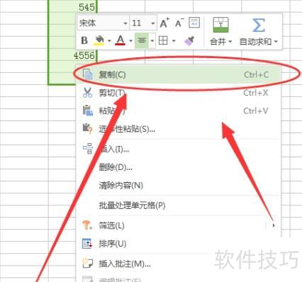 第二步:右键点击所选竖向数字,选择复制。