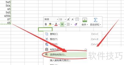 第三步:右键点击目标区域,从菜单中选择选择性粘贴功能。