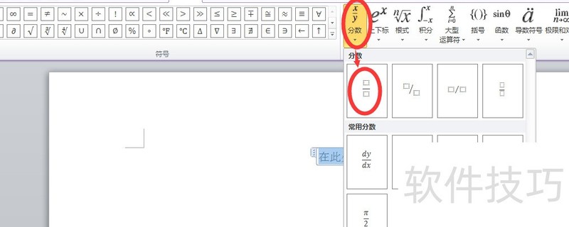 第三步:选竖式分数符号,输入分子与分母,完成分数录入。