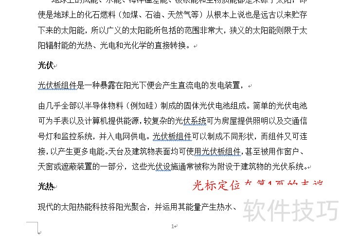 将光标置于第一页末尾,插入分节符以分割页面。