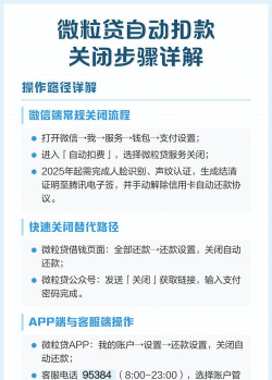 3、详细关闭操作步骤接下来,就是核心部分了,具体的关闭操作,请跟着步骤来,第一步,打开微信,点击右下角“我”,第二步,进入“服务”页面,第三步,在金融理财栏里,找到“微粒贷借钱”,第四步,进入微粒贷首页后,点击右上角,那个“...”符号,或者“帮助中心”,第五步,在页面里寻找,“账户管理”或“关闭账户”选项,第六步,按照提示操作,可能需要验证,你的支付密码,或者人脸识别,提交关闭申请,等待系统处理,通常,关闭是即时生效的,但为了保险,你可以退出重进,看看是否还显示。