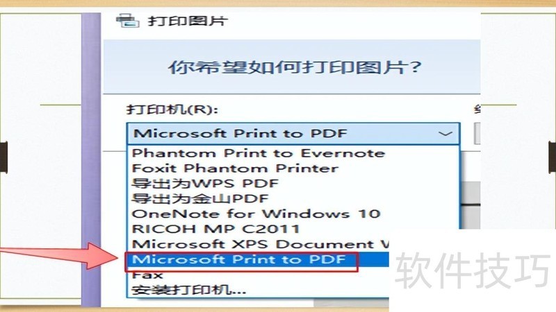 在打印机对话框中选择Microsoft Print to PDF选项。