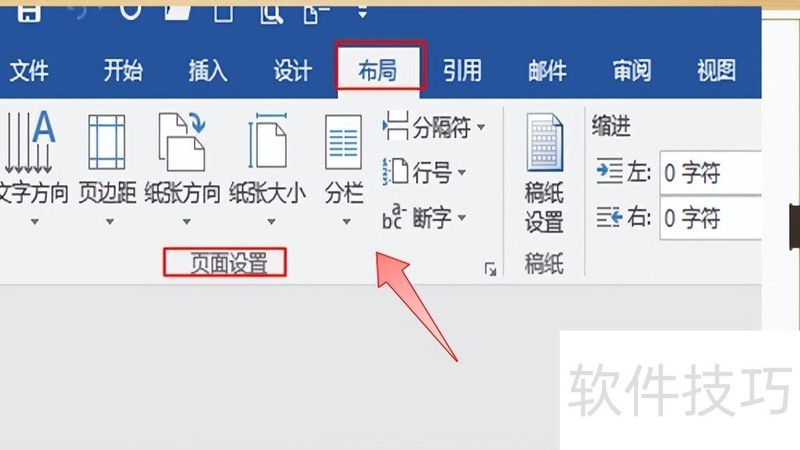 新建空白Word文档,点击顶部布局选项卡,进入页面设置进行相关配置。