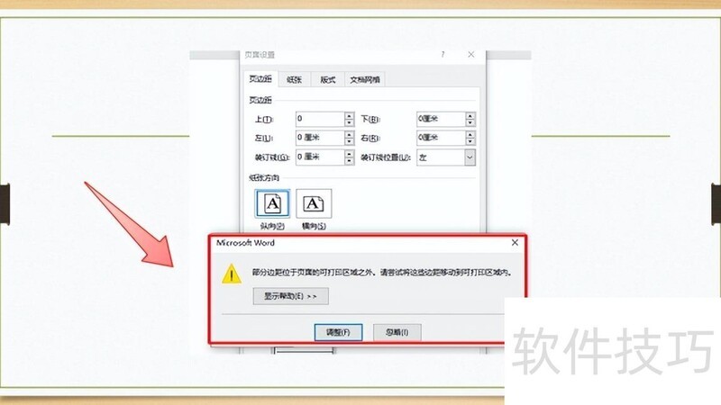 界面将提示部分边距超出可打印区域,请直接点击忽略按钮继续操作。