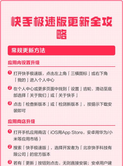 让快手保持最新,其实并不复杂,通过官方应用商店更新,是最省心的方式,在App内直接检查,则更加快捷,从官网下载,适合有特殊需求的用户,同时,了解更新失败的缘由,也能帮你,更快地解决问题,希望这些方法,能帮你轻松搞定,快手的版本更新,从而,更好地享受,刷视频和拍视频的乐趣。