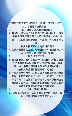 1、 从入口到发布,基础操作全掌握打开微信,找到“发现”页面,点击“朋友圈”图标,进入后,你会看到右上角,有一个相机按钮,点击它,就可以开始创作了,你可以选择拍照,或者从手机相册里,挑选已有的照片或视频,选好后,可以添加文字描述,然后点击“发表”,一条朋友圈就诞生了。