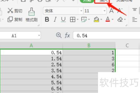 输入数据后,全选数据,点击上方工具栏中的插入选项。
