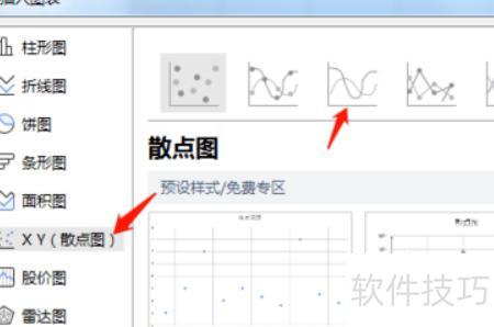 点击全部图表可查看所有图表类型,因需制作标准曲线图,故选择散点图。