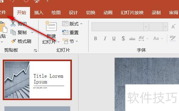 首先启动PPT软件,打开所需演示文稿,在界面左上角工具栏点击文件选项卡,所示,随后进入下一步操作。