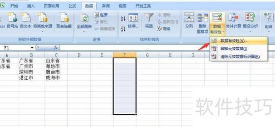 选择一级下拉区域,点击数据选项中的数据有效性。