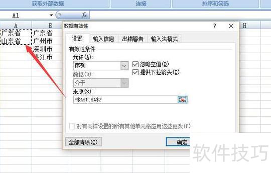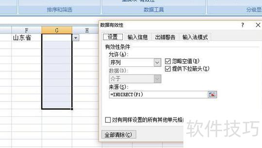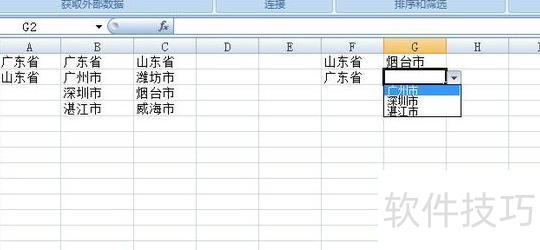 完成二级联动数据有效性设置。