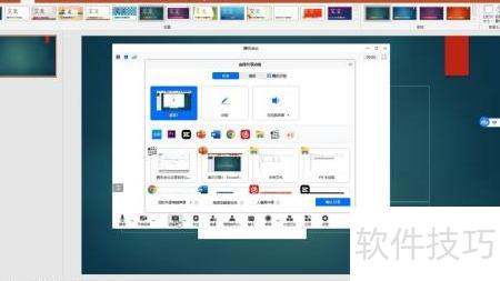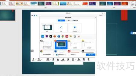 在共享屏幕选项中,可选择共享整个屏幕或特定窗口。若已打开PPT文件,建议选择共享该PPT应用窗口,以便精准展示内容。