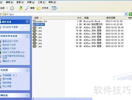 打开C盘的pic文件夹,双击其中的ren.bat批处理文件,系统将根据rename.xls中设定的顺序和名称,自动批量重命名该文件夹内的所有jpg图片,具体效果所示。