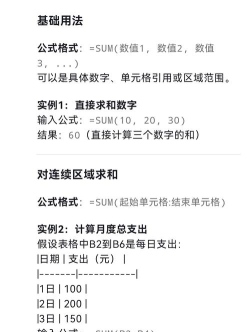 为了更清晰地理解SUM函数的应用,可通过以下几个示例加以说明: