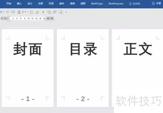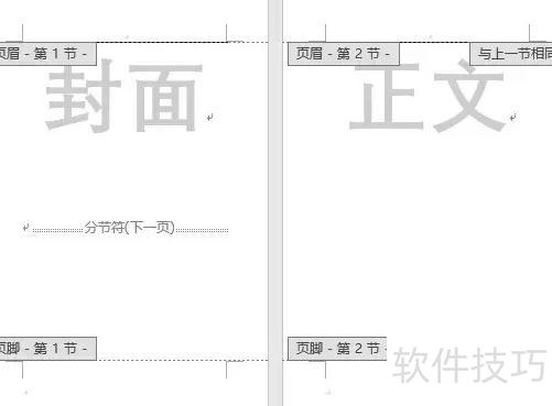 在封面与正文间插入分节符,使文档分为两部分。