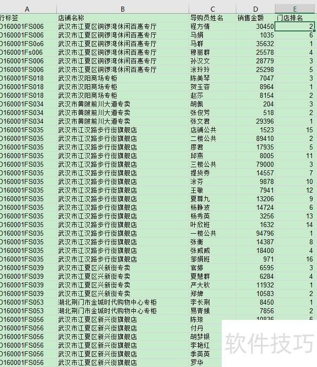我猜测需要按门店分别统计销售排名,若是如此,请使用下方公式;否则请修改题目要求并上传新图片。