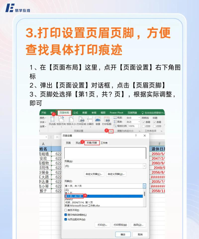 若需设置页脚,操作方法与页眉一致。回到页面设置对话框中的页眉/页脚选项卡,点击页脚旁边的下拉菜单,从中选择所需的格式,如页码、时间、作者名称等,确认后同样点击确定。设置完成后,再次通过打印预览查看整体排版效果,确保页眉与页脚布局合理、信息准确。