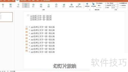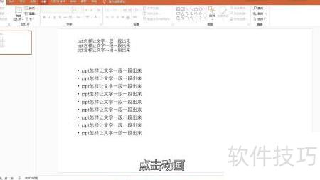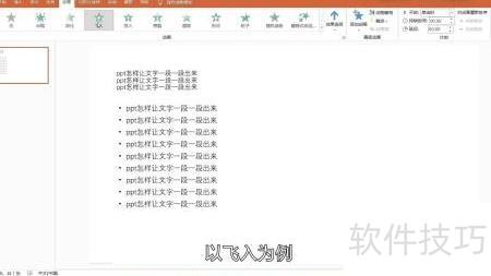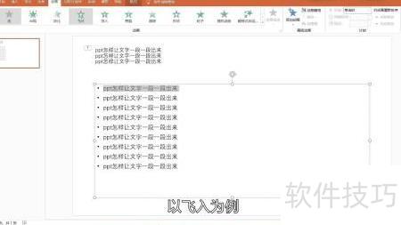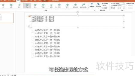 PPT文字逐段显示的方法如下: