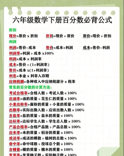 4、灵活运用百分比解决实际问题掌握了基础,就要会用,比如算折扣,原价100元打8折,就是100×80%=80元,算增长率,今年120去年100,增长率就是[(120-100)/100]×100%=20%,多练习几种场景,你就能举一反三,应对自如了。