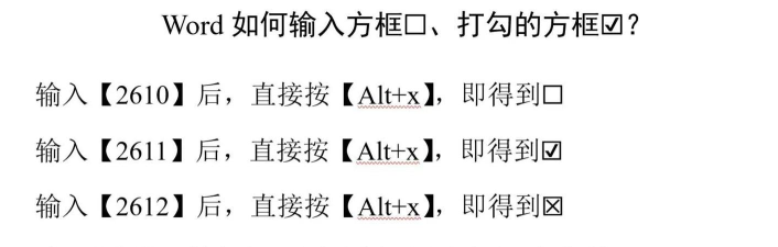 更快捷的是,用快捷键,比如Word里,输入2611,然后,按下Alt+X,立刻变成,带勾方框,非常神奇,记住代码,就能快速输入,大大提高,工作效率。