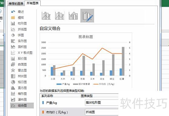 选中表格所有数据,进入插入界面选择推荐的图表,点击组合图,为不同数据设置对应图表类型,最后确认即可完成。