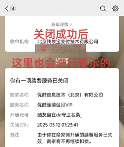 2、在支付平台内解约找到优酷的自动扣费项目后,事情就简单多了,点击进入详情页,你会看到“关闭服务”或“解约”的按钮,不过,平台可能会挽留你,弹出一些优惠提示,别管它,坚定地选择关闭,确认之后,自动续费的功能,就被成功关闭了,但请注意,这并不会,立刻退款给你,只是保证了,下个月不再扣钱。